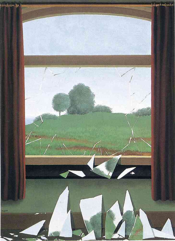 Nous vous proposons une reproduction artisanale sur toile du célèbre tableau 'La clé des champs' de Rene Magritte, provenant du Musée de la Reproduction.