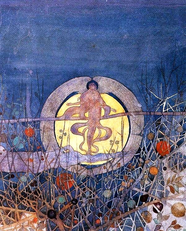 Nous vous proposons une reproduction artisanale sur toile du célèbre tableau 'La lune de récolte' de Charles Rennie Mackintosh, provenant du Musée de la Reproduction.