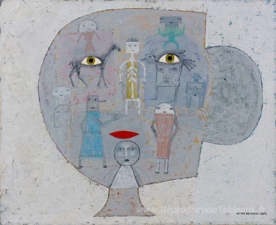 Nous vous proposons une reproduction artisanale sur toile du célèbre tableau 'La ricostruzione de l'?tre aime' de Victor Brauner, provenant du Musée de la Reproduction.