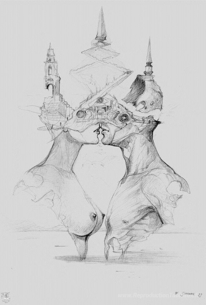 Nous vous proposons une reproduction artisanale sur toile du célèbre tableau 'La télépathie' de Wojciech Siudmak, provenant du Musée de la Reproduction.