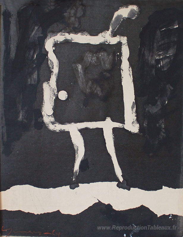 Nous vous proposons une reproduction artisanale sur toile du célèbre tableau 'La tortue' de Adja Yunkers, provenant du Musée de la Reproduction.