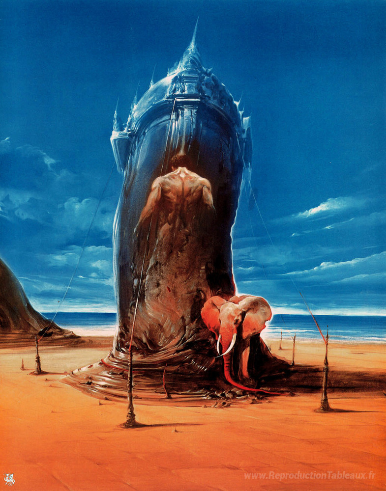 Nous vous proposons une reproduction artisanale sur toile du célèbre tableau 'La tour carrée' de Wojciech Siudmak, provenant du Musée de la Reproduction.