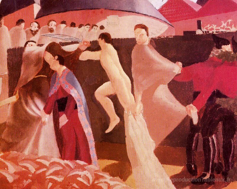 Nous vous proposons une reproduction artisanale sur toile du célèbre tableau 'La trahison' de Stanley Spencer, provenant du Musée de la Reproduction.
