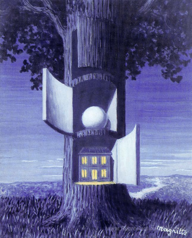 Nous vous proposons une reproduction artisanale sur toile du célèbre tableau 'La voix du sang' de Rene Magritte, provenant du Musée de la Reproduction.