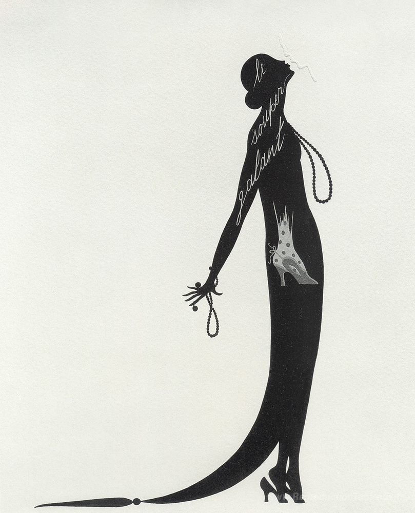 Nous vous proposons une reproduction artisanale sur toile du célèbre tableau 'Le baiser' de Erte, provenant du Musée de la Reproduction.
