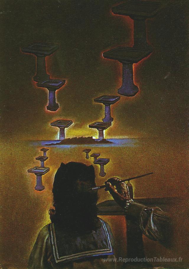 Nous vous proposons une reproduction artisanale sur toile du célèbre tableau 'Le lavabo' de Salvador Dali, provenant du Musée de la Reproduction.