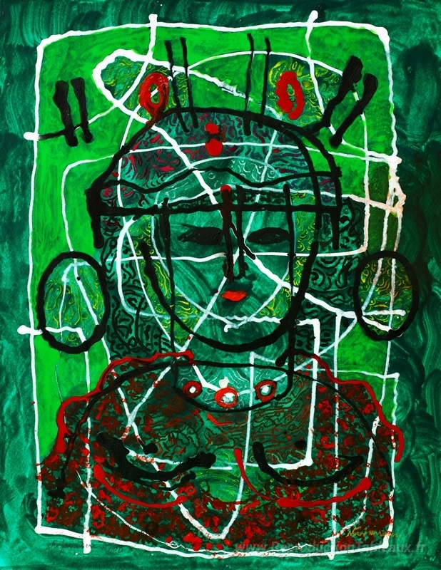 Nous vous proposons une reproduction artisanale sur toile du célèbre tableau 'Le magicien vert' de George Stefanescu-Ramnic , provenant du Musée de la Reproduction.