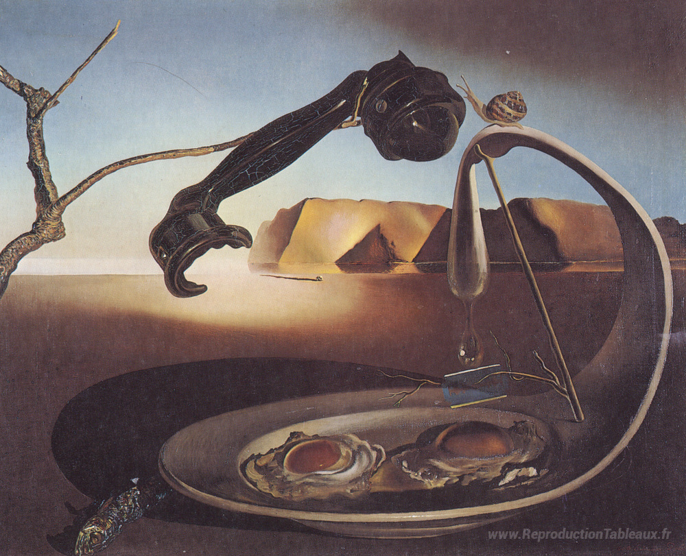 Nous vous proposons une reproduction artisanale sur toile du célèbre tableau 'Le moment sublime' de Salvador Dali, provenant du Musée de la Reproduction.