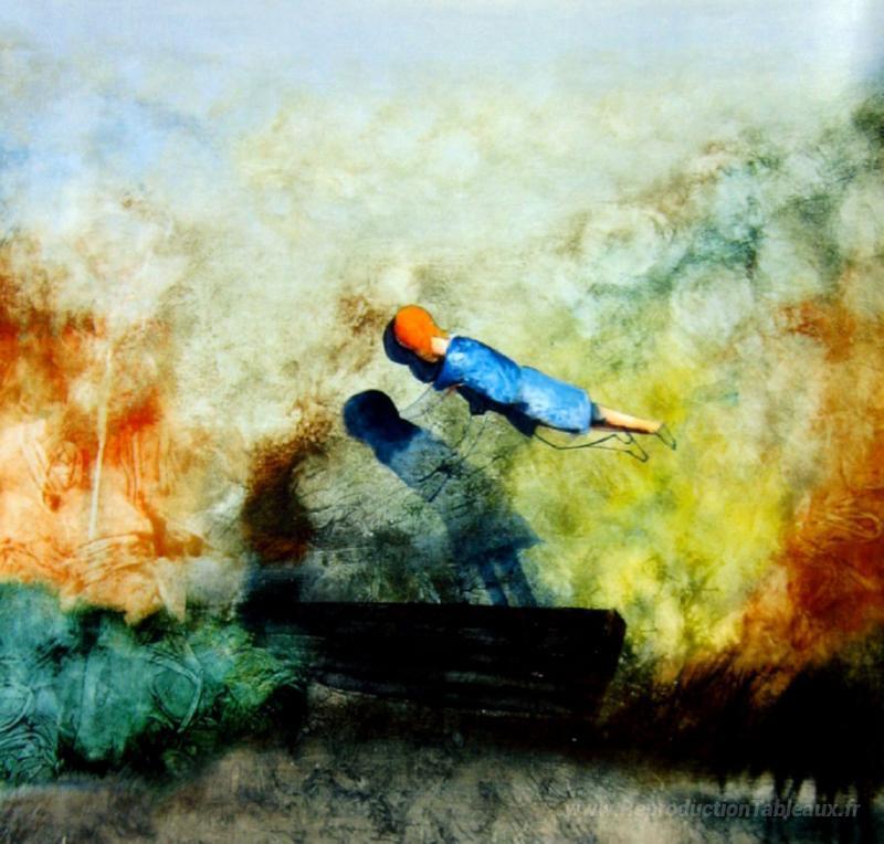 Nous vous proposons une reproduction artisanale sur toile du célèbre tableau 'Le rêve de Christabel `` The Floating Boat '' (Estuaire de rêve)' de Charles Blackman, provenant du Musée de la Reproduction.
