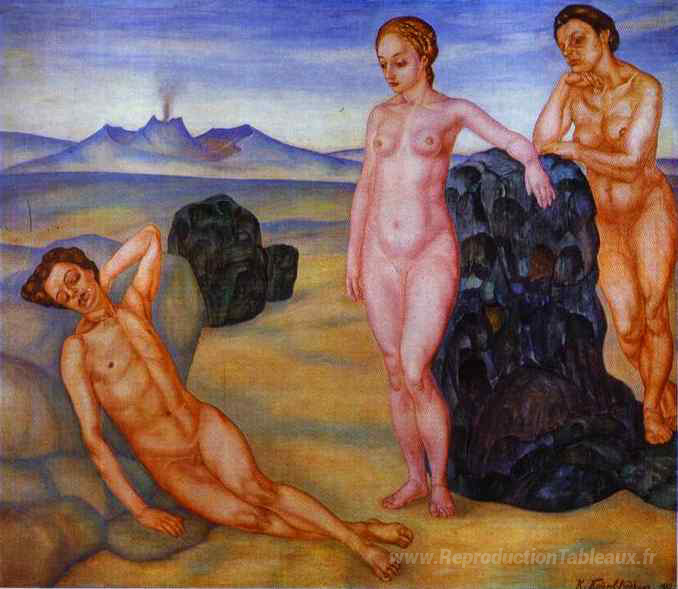Nous vous proposons une reproduction artisanale sur toile du célèbre tableau 'Le rêve' de Kuzma Petrov-Vodkin, provenant du Musée de la Reproduction.