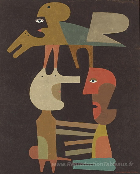 Nous vous proposons une reproduction artisanale sur toile du célèbre tableau 'Le secret du privilège' de Victor Brauner, provenant du Musée de la Reproduction.