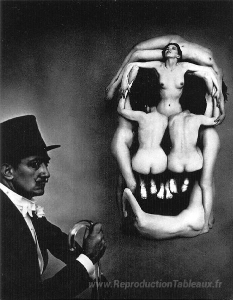 Nous vous proposons une reproduction artisanale sur toile du célèbre tableau 'Les femmes forment un crâne' de Salvador Dali, provenant du Musée de la Reproduction.