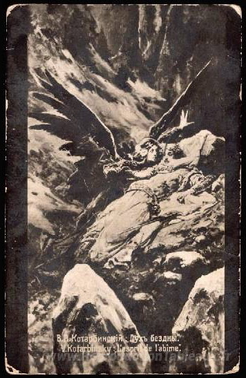 Nous vous proposons une reproduction artisanale sur toile du célèbre tableau 'L'esprit de l'abîme' de Wilhelm Kotarbinski, provenant du Musée de la Reproduction.