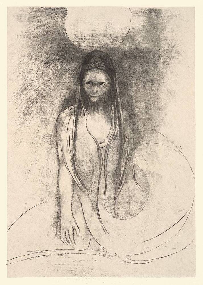 Nous vous proposons une reproduction artisanale sur toile du célèbre tableau 'L'intelligence était à moi! Je suis devenu le Bouddha! (Planche ' de Odilon Redon, provenant du Musée de la Reproduction.