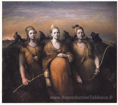 Nous vous proposons une reproduction artisanale sur toile du célèbre tableau 'Mères jumelles' de Odd Nerdrum, provenant du Musée de la Reproduction.