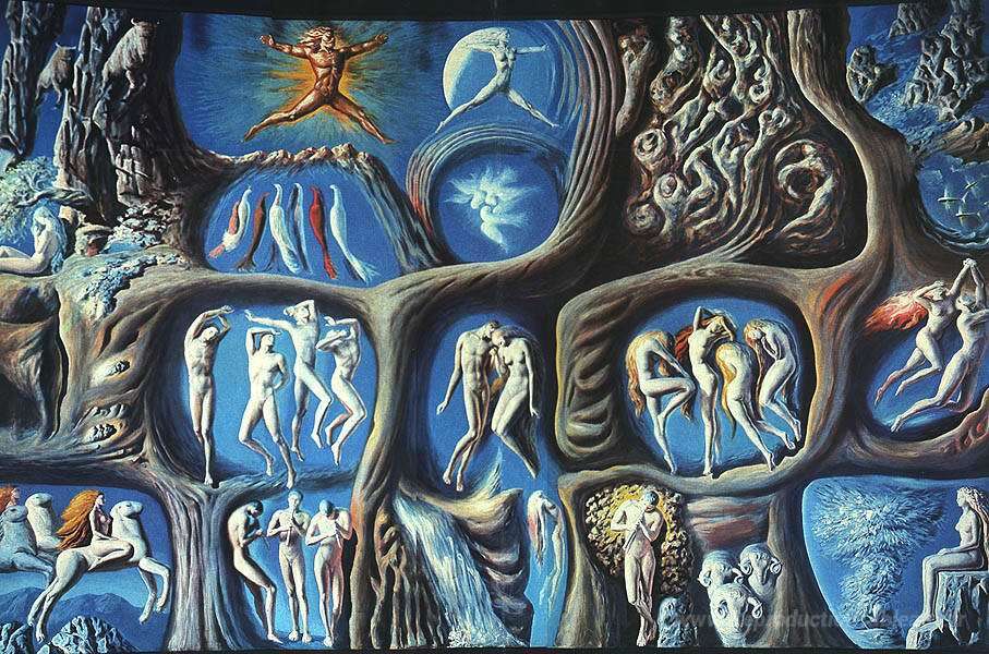 Nous vous proposons une reproduction artisanale sur toile du célèbre tableau 'Mariage cosmique' de Sabin Balasa, provenant du Musée de la Reproduction.