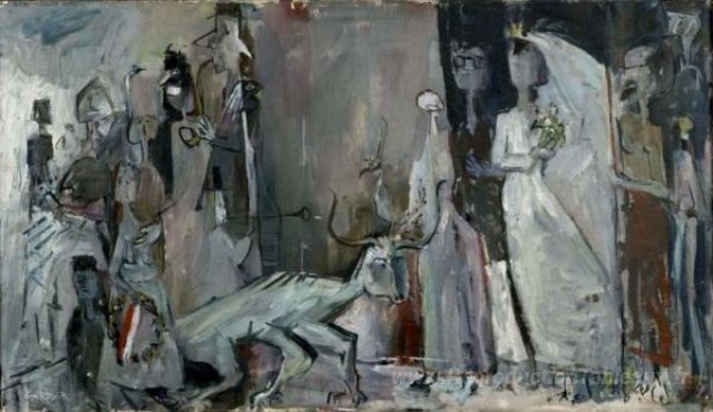 Nous vous proposons une reproduction artisanale sur toile du célèbre tableau 'Mariage' de Theo Gerber, provenant du Musée de la Reproduction.