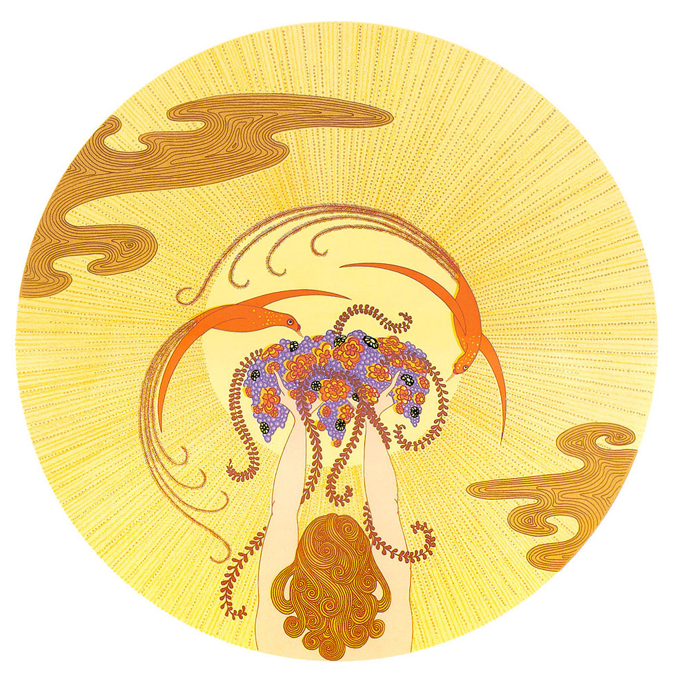 Nous vous proposons une reproduction artisanale sur toile du célèbre tableau 'Midi' de Erte, provenant du Musée de la Reproduction.