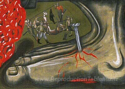 Nous vous proposons une reproduction artisanale sur toile du célèbre tableau 'Moulin (fragment)' de Sue Coe, provenant du Musée de la Reproduction.