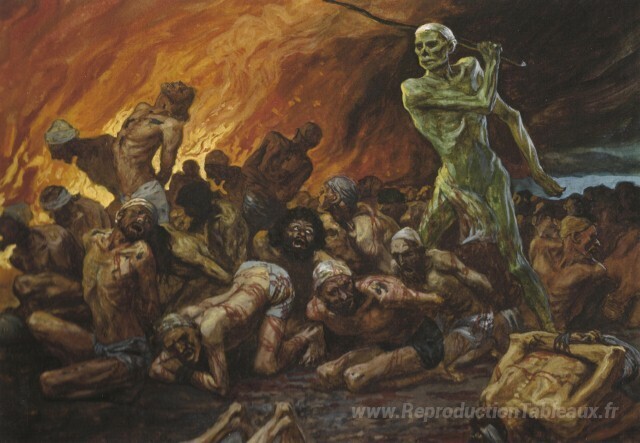 Nous vous proposons une reproduction artisanale sur toile du célèbre tableau 'Moutons, ils sont pondus dans la tombe' de James Tissot, provenant du Musée de la Reproduction.