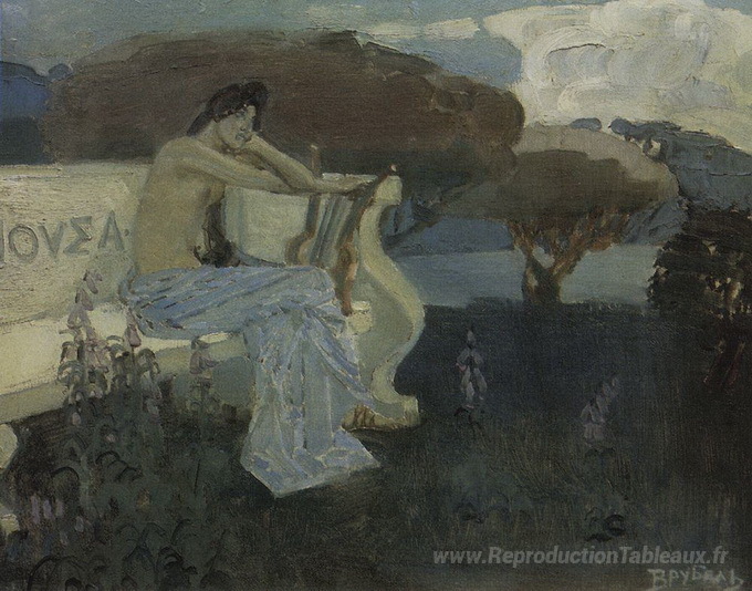 Nous vous proposons une reproduction artisanale sur toile du célèbre tableau 'Musa' de Mikhail Vrubel, provenant du Musée de la Reproduction.