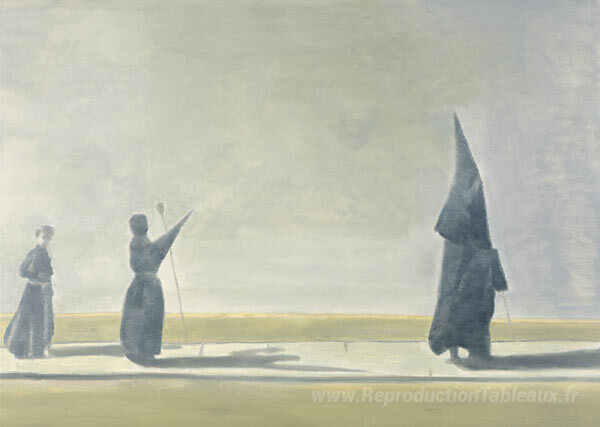 Nous vous proposons une reproduction artisanale sur toile du célèbre tableau 'Pâques' de Luc Tuymans, provenant du Musée de la Reproduction.
