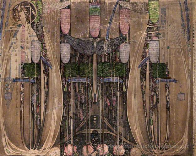 Nous vous proposons une reproduction artisanale sur toile du célèbre tableau 'Panneau mural pour les pirogues (salon de thé, Glasgow) - à droi' de Charles Rennie Mackintosh, provenant du Musée de la Reproduction.