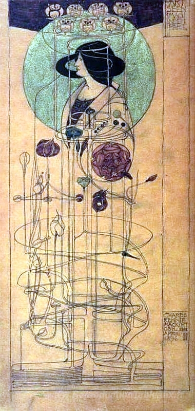 Nous vous proposons une reproduction artisanale sur toile du célèbre tableau 'Partie vue partie imaginée' de Charles Rennie Mackintosh, provenant du Musée de la Reproduction.