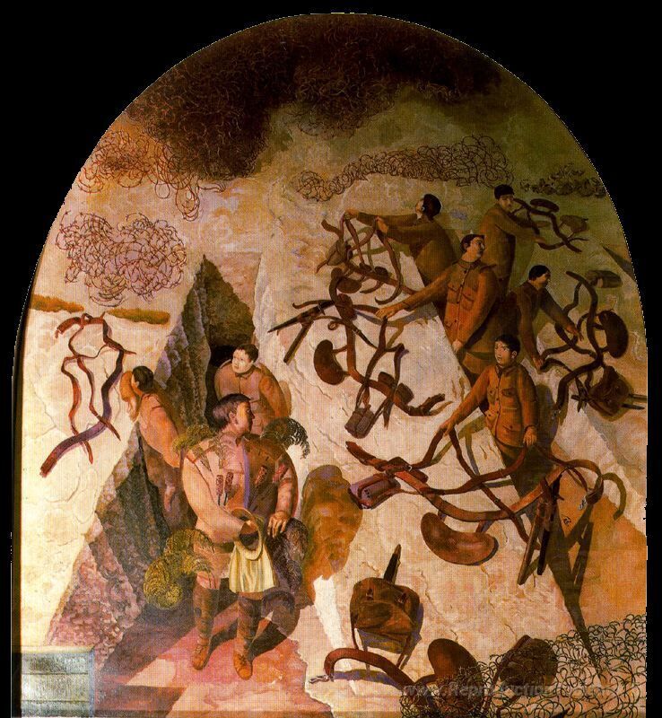 Nous vous proposons une reproduction artisanale sur toile du célèbre tableau 'Pirogue (stand-to)' de Stanley Spencer, provenant du Musée de la Reproduction.