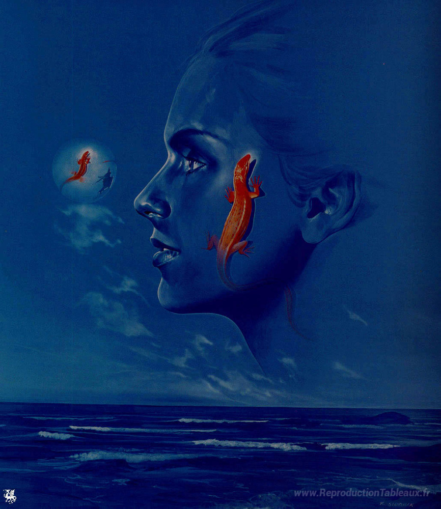 Nous vous proposons une reproduction artisanale sur toile du célèbre tableau 'Réincarnation' de Wojciech Siudmak, provenant du Musée de la Reproduction.