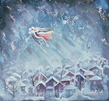 Nous vous proposons une reproduction artisanale sur toile du célèbre tableau 'Rêve bleu' de Radi Nedelchev, provenant du Musée de la Reproduction.