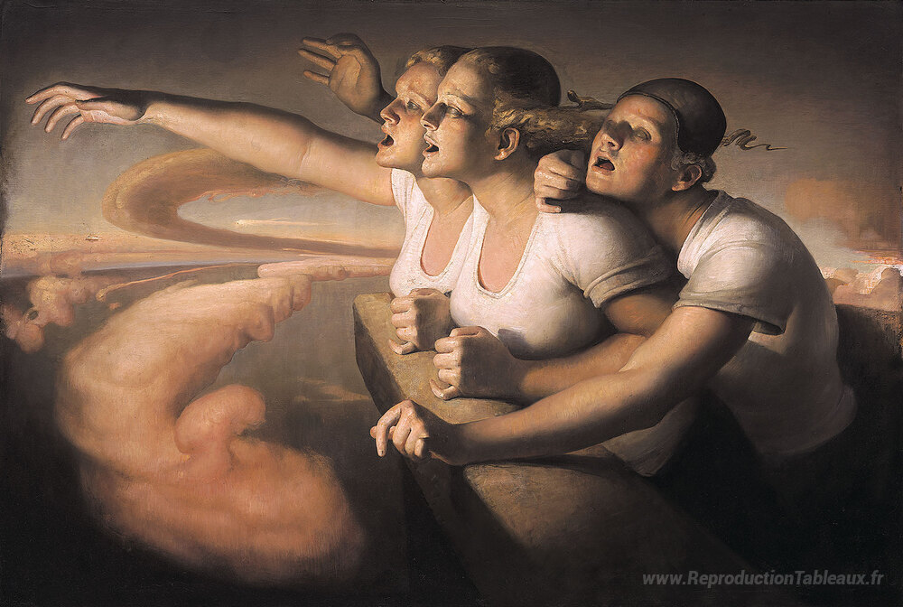 Nous vous proposons une reproduction artisanale sur toile du célèbre tableau 'Retour du soleil' de Odd Nerdrum, provenant du Musée de la Reproduction.