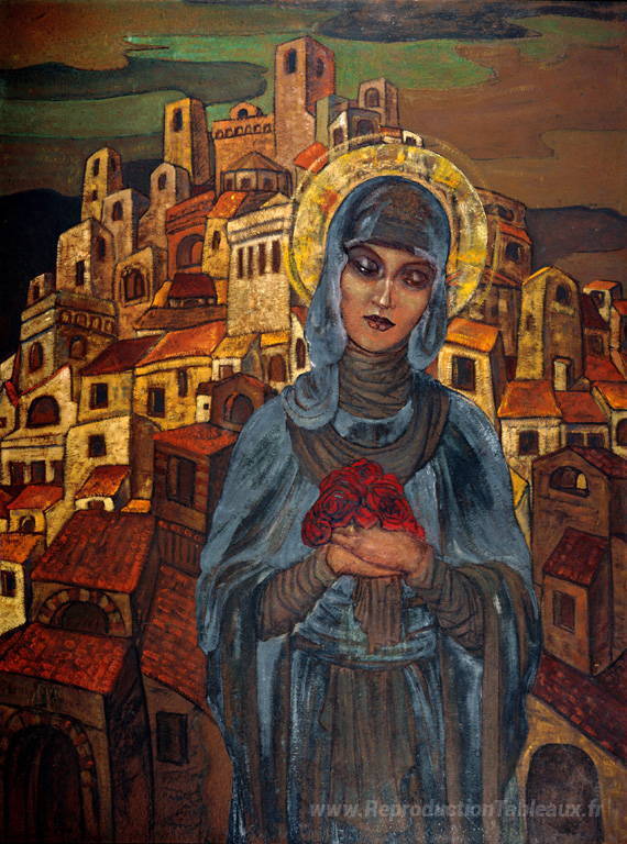 Nous vous proposons une reproduction artisanale sur toile du célèbre tableau 'Roses de cœur. Princesse Olga.' de Nicholas Roerich, provenant du Musée de la Reproduction.