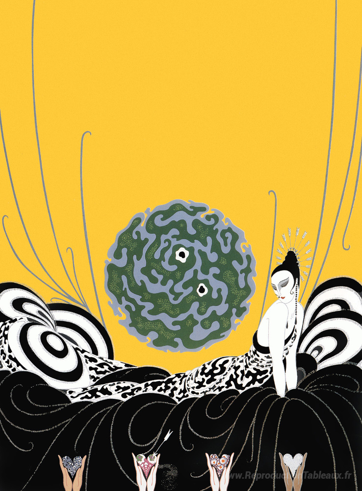 Nous vous proposons une reproduction artisanale sur toile du célèbre tableau 'Sélection d'un cœur' de Erte, provenant du Musée de la Reproduction.