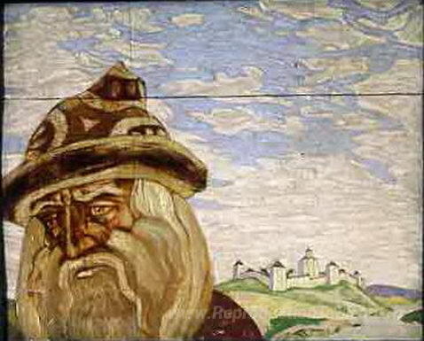 Nous vous proposons une reproduction artisanale sur toile du célèbre tableau 'Siècle d'administration' de Nicholas Roerich, provenant du Musée de la Reproduction.