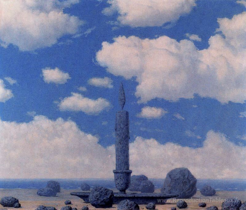 Nous vous proposons une reproduction artisanale sur toile du célèbre tableau 'Souvenir des voyages' de Rene Magritte, provenant du Musée de la Reproduction.