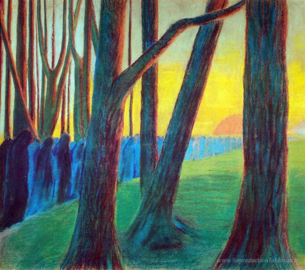 Bienvenue dans notre collection dédiée aux beautés intemporelles des peinture à l'huile, où l'art et l'élégance s'entrelacent pour sublimer votre intérieur. Découvrez Symphonie funéraire (III), une œuvre emblématique de l'artiste lituanien Mikalojus Ciurlionis, qui marie habilement mystère et poésie. Ce chef-d'œuvre, fruit d'une technique minutieuse et d'une palette de couleurs envoûtantes, invite à une contemplation profonde et spirituelle.