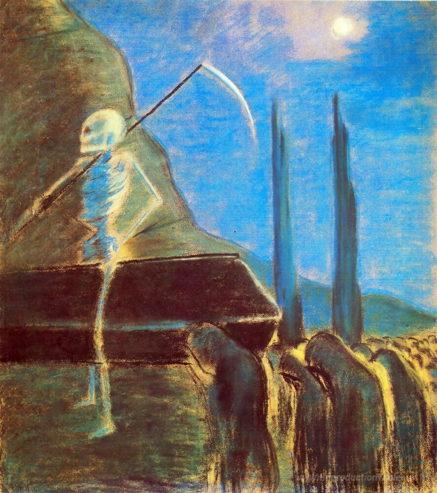 Nous vous proposons une reproduction artisanale sur toile du célèbre tableau 'Symphonie funéraire (V)' de Mikalojus Ciurlionis, provenant du Musée de la Reproduction.