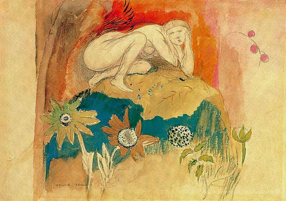 Nous vous proposons une reproduction artisanale sur toile du célèbre tableau 'Tentation' de Odilon Redon, provenant du Musée de la Reproduction.
