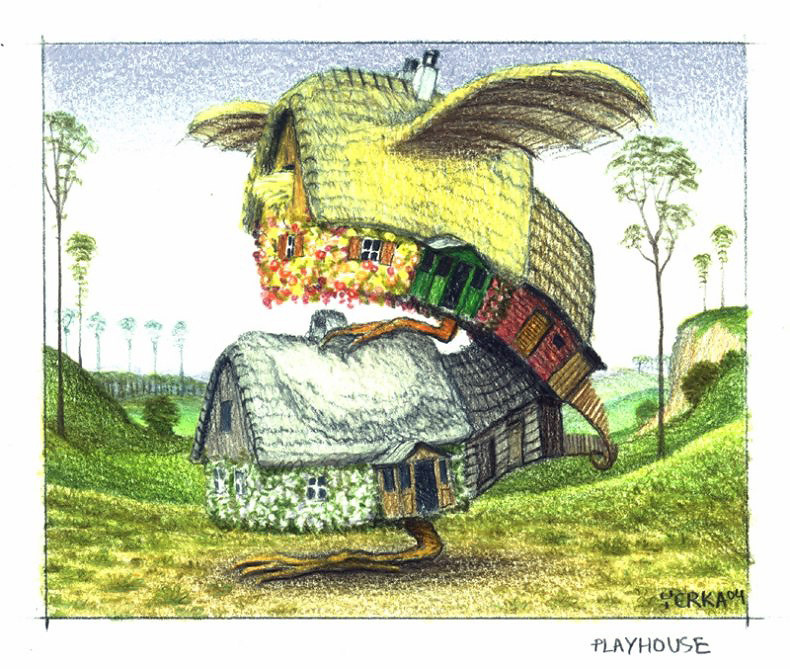 Nous vous proposons une reproduction artisanale sur toile du célèbre tableau 'Théâtre' de Jacek Yerka, provenant du Musée de la Reproduction.