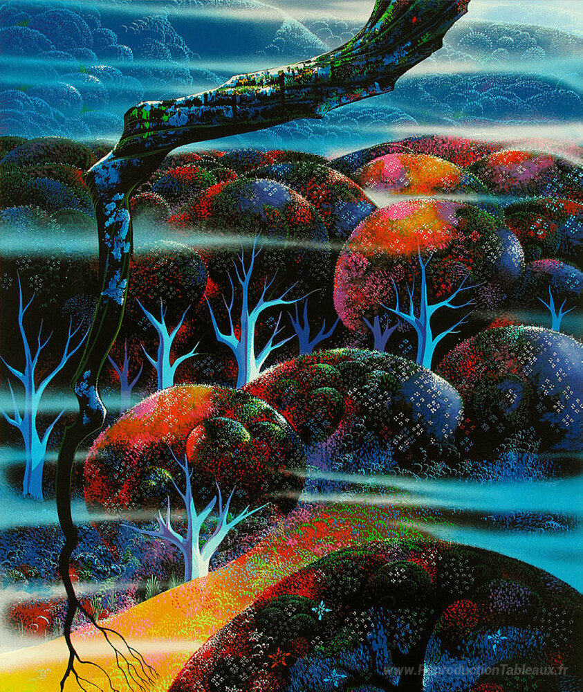 Bienvenue dans l'univers enchanteur de la peinture à l'huile, où chaque œuvre raconte une histoire unique à travers les mains d'artistes visionnaires. Parmi ces talents se trouve Eyvind Earle, un maître du paysage dont la technique raffinée et le style distinctif font vibrer l'âme. Sa célèbre œuvre, Toccata et fugue, transporte le spectateur dans une symphonie de couleurs et de textures, capturant la magie d'une nature exubérante et vibrante.