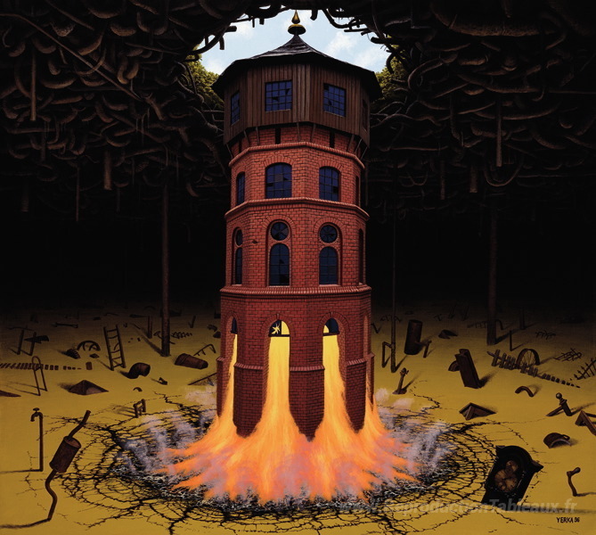 Nous vous proposons une reproduction artisanale sur toile du célèbre tableau 'Tour sous-marine' de Jacek Yerka, provenant du Musée de la Reproduction.