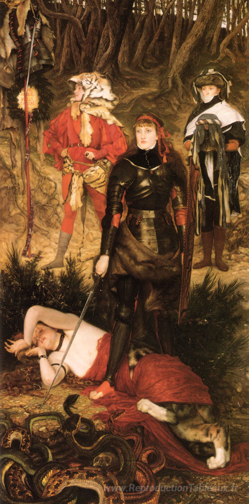 Nous vous proposons une reproduction artisanale sur toile du célèbre tableau 'Triomphe de la volonté le défi' de James Tissot, provenant du Musée de la Reproduction.