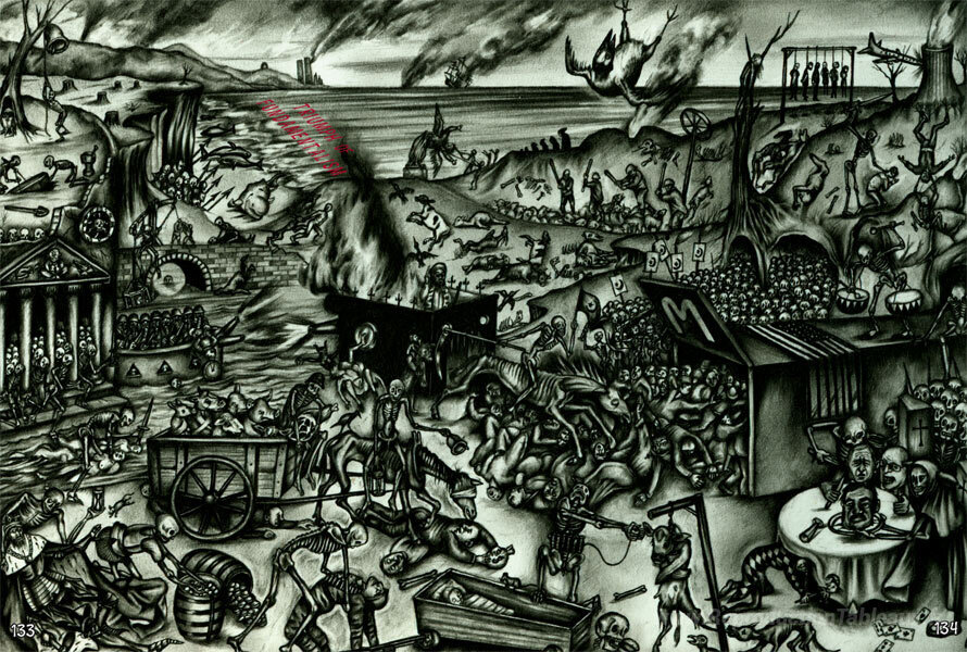 Nous vous proposons une reproduction artisanale sur toile du célèbre tableau 'Triomphe' de Sue Coe, provenant du Musée de la Reproduction.