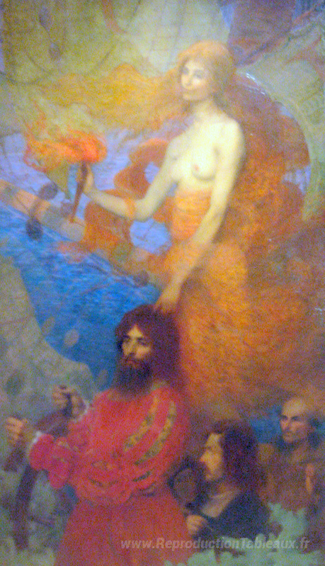 Nous vous proposons une reproduction artisanale sur toile du célèbre tableau 'Une providence Guia Cabral' de Eliseu Visconti, provenant du Musée de la Reproduction.