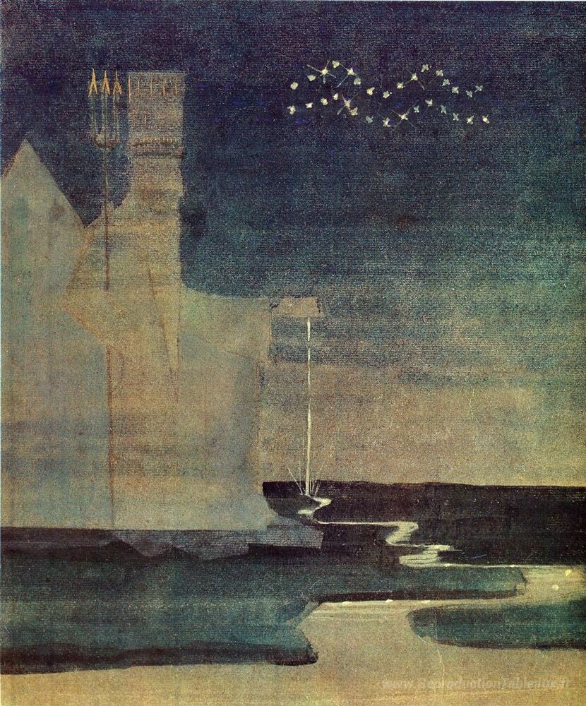 Nous vous proposons une reproduction artisanale sur toile du célèbre tableau 'Verseau' de Mikalojus Ciurlionis, provenant du Musée de la Reproduction.