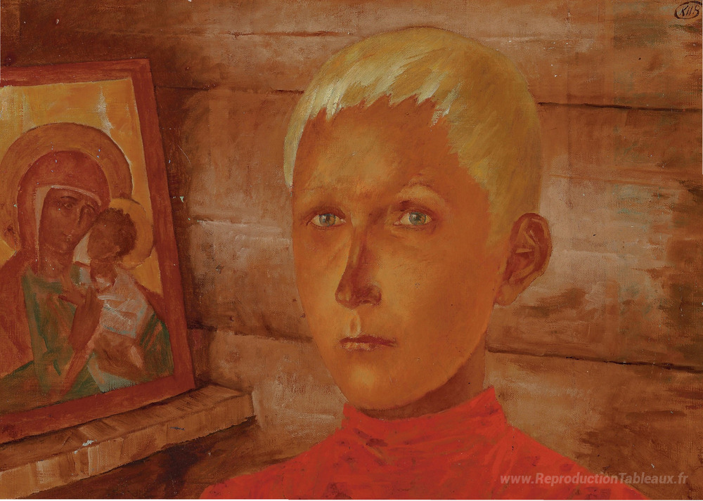 Nous vous proposons une reproduction artisanale sur toile du célèbre tableau 'Vaska' de Kuzma Petrov-Vodkin, provenant du Musée de la Reproduction.