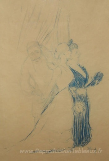 Nous vous proposons une reproduction artisanale sur toile du célèbre tableau 'Étude préliminaire ingéraire moderne' de Theophile Steinlen, provenant du Musée de la Reproduction.