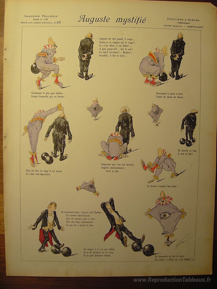 Nous vous proposons une reproduction artisanale sur toile du célèbre tableau 'Auguste Mystifie' de Theophile Steinlen, provenant du Musée de la Reproduction.