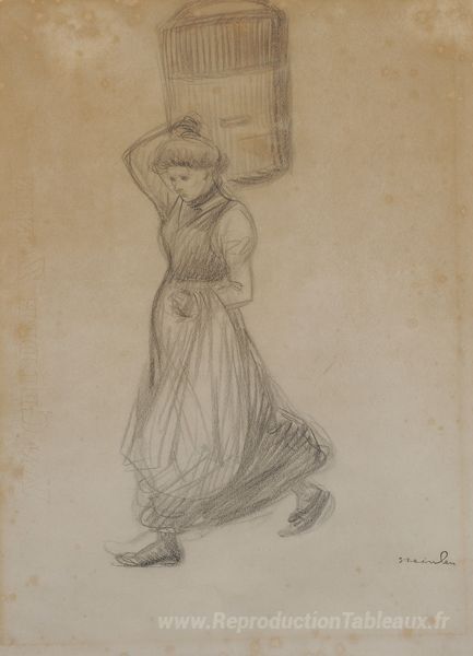 Nous vous proposons une reproduction artisanale sur toile du célèbre tableau 'Blanchisseuse' de Theophile Steinlen, provenant du Musée de la Reproduction.